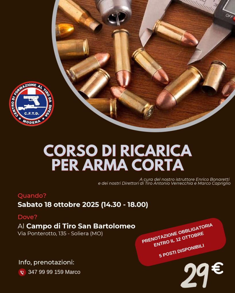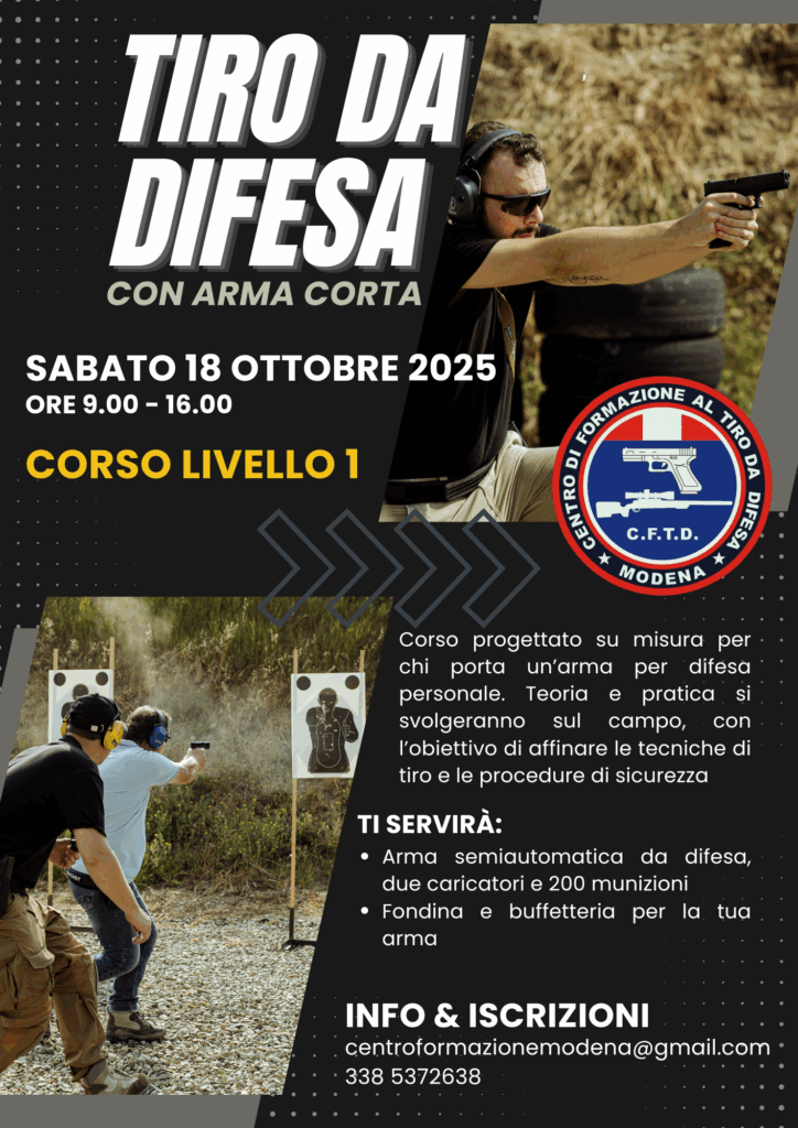 Corso di tiro tattico – difensivo con Arma Corta – Sabato 18 Ottobre 2025