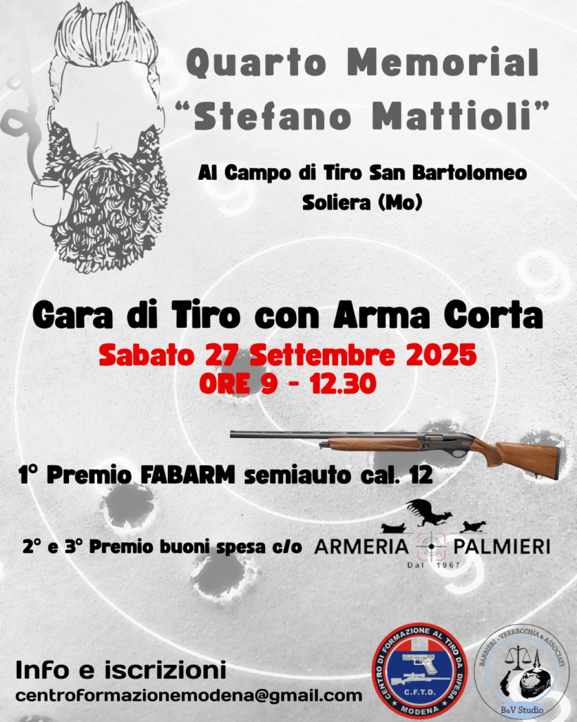 Quarto Memorial “Mattioli” – Gara con arma corta – Sabato 27 settembre 2025