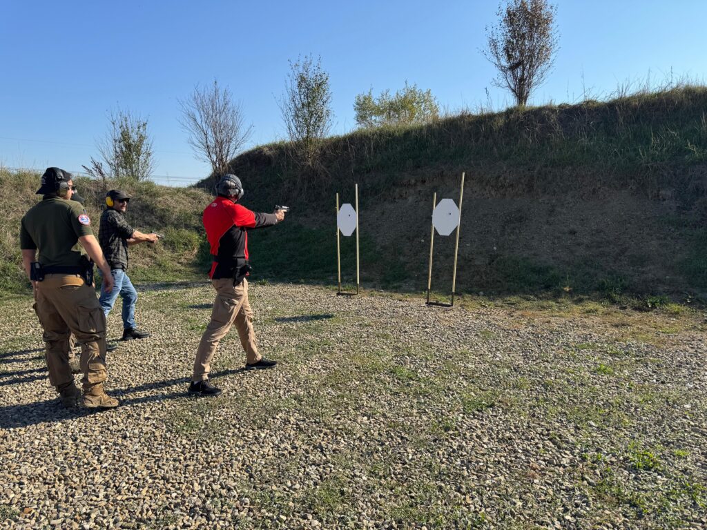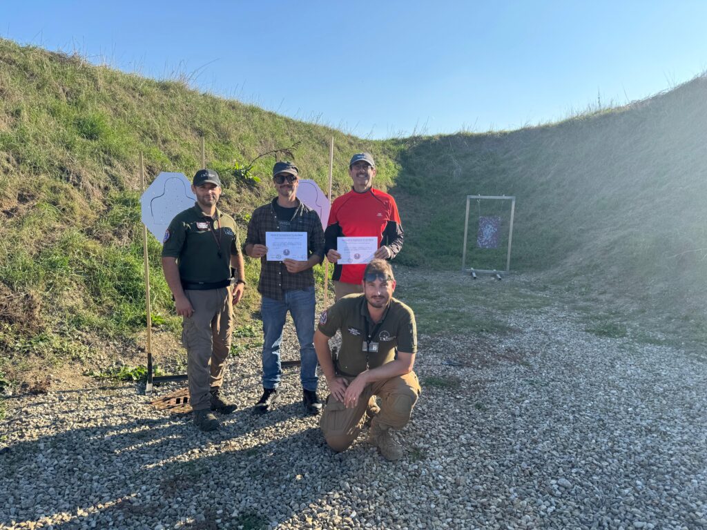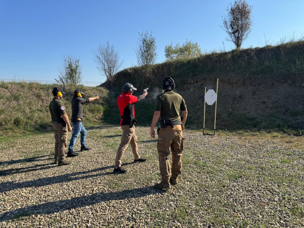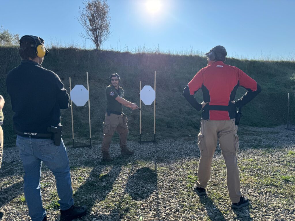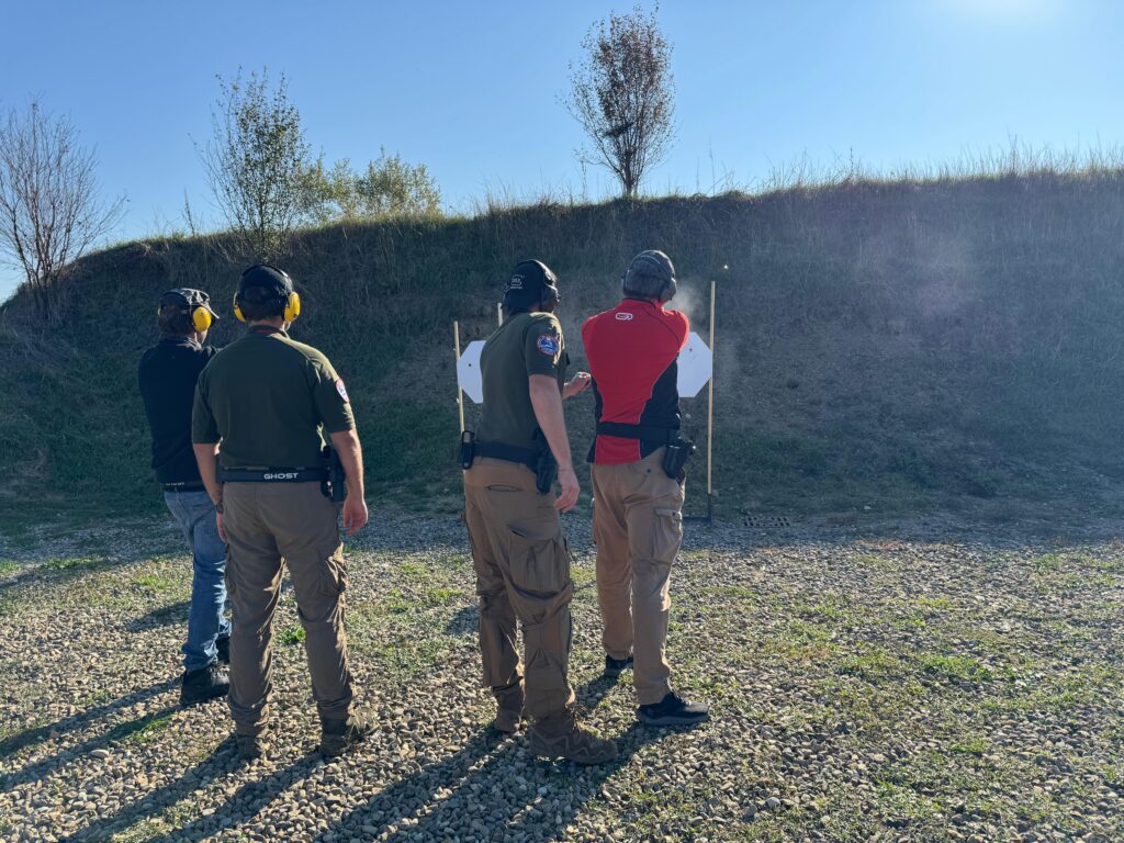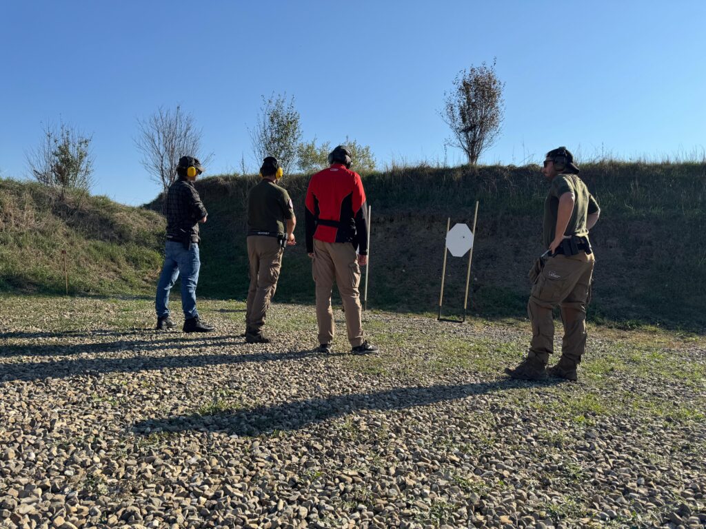 Alcuni scatti del doppio appuntamento del 18/10/2025 che ha visto lo svolgimento del Corso di primo livello di tiro tattico – difensivo con arma corta erogato dagli Istruttori di CFTD e del Corso di ricarica per arma corta.